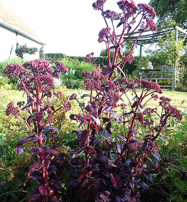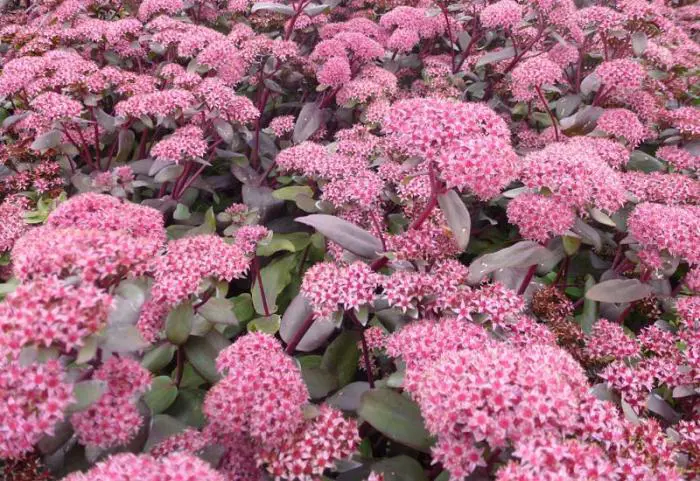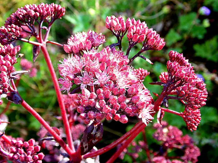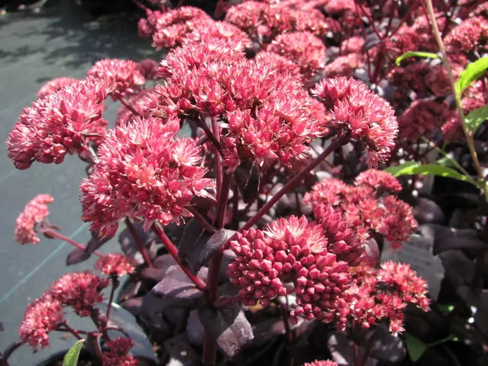 Sedum 'Purple Emperor' (Atropurpureum Group) is een fantastische variëteit, die zeer mooi sappig, glanzend roodpaars blad combineer met een zeer heldere rozerode bloei.