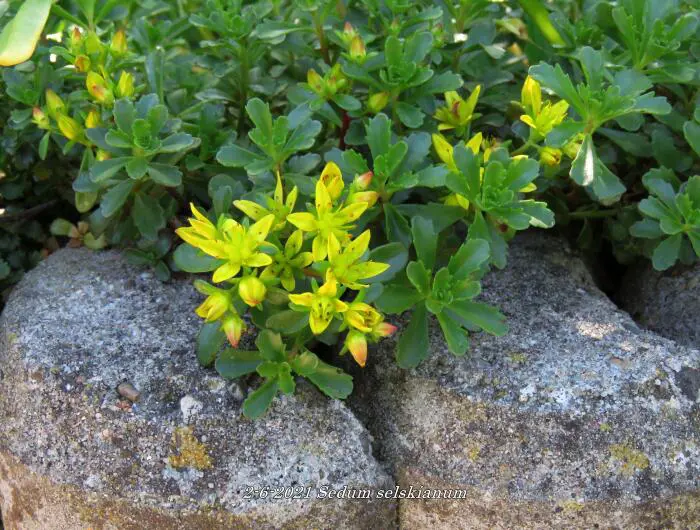 Sedum selskianum afkomstig uit Noord-China en Siberië is een compacte bodembedekkende plant.