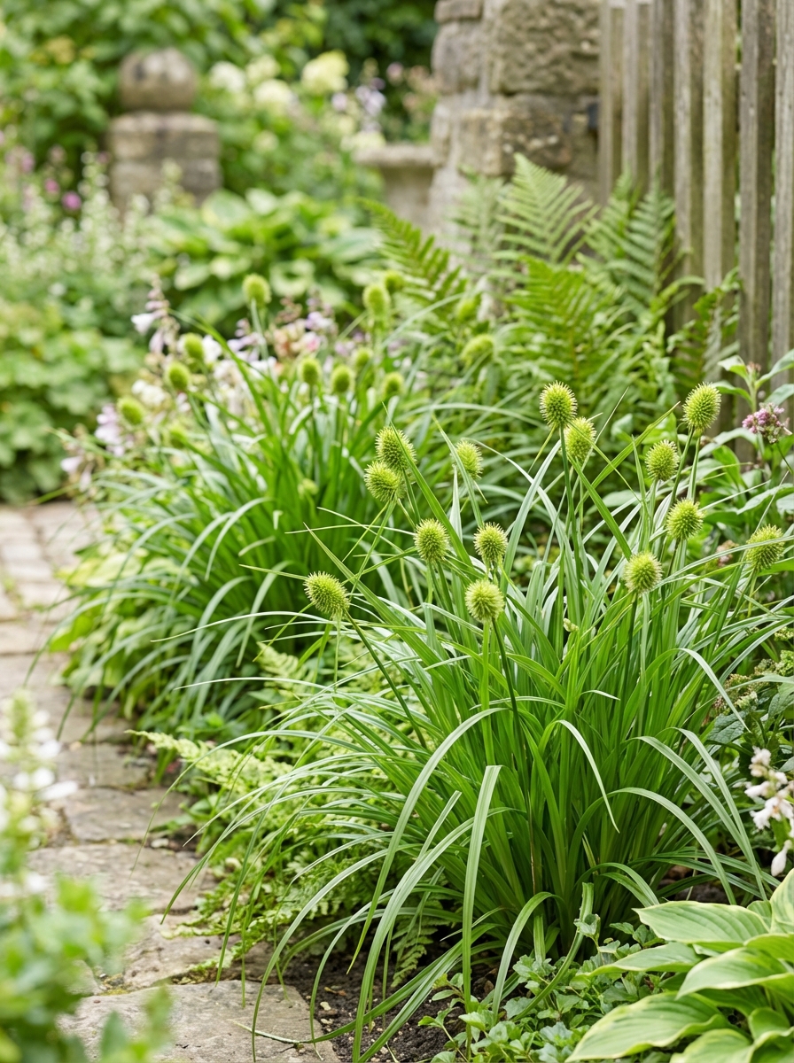 Een heldergroene Carex van 70cm hoog maar met een heel speciale zaaddoos dat op een bessentros lijkt