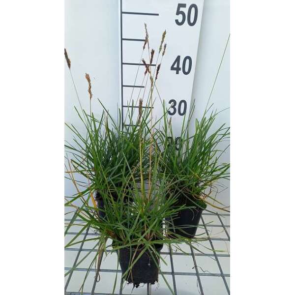 Sesleria 'Greenlee Hybrid' vormt dichte pollen van lineaire, groengrijze bladeren en bloeit op slanke, rechtopstaande stelen met zilverwitte aartjes waarvan de knoppen purper getint zijn.