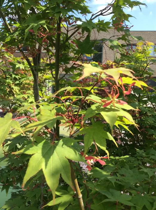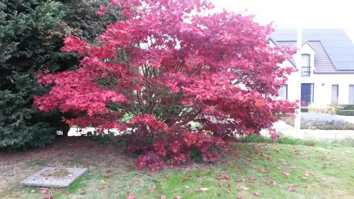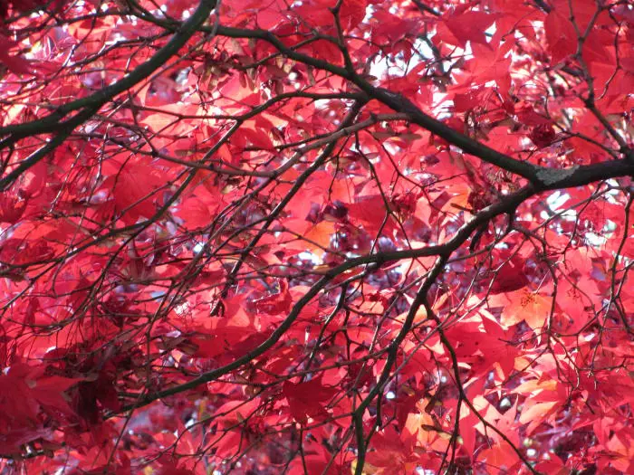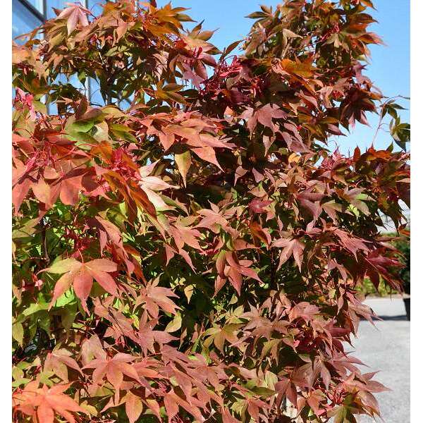 Acer palmatum 'Osakazuki' is een breed opgaande struik met grotere bladeren dan de soort.