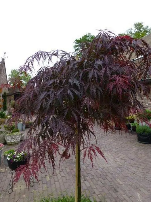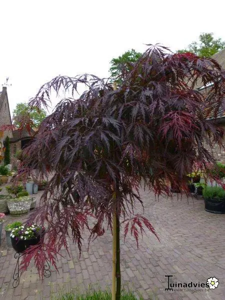 Acer palmatum 'Tamukeyama' is een langzaam groeiende struik/boom met prachtige diep ingesneden paarsrode bladeren. In het najaar is het blad roder gekleurd.