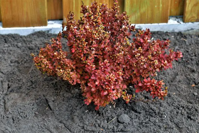 Berberis thunbergii 'Lutin Rouge' is een prachtig, doornig bolvormig dwergstruikje met kleine ronde, glanzende vuurrode blaadjes die nog intenser rood zijn in de herfst.