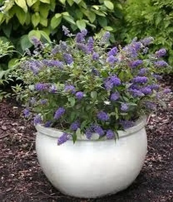 En mini vlinderstuik bloeit met lichtblauwe bloeipluimen dat hooguit 80cm hoog wordt, blijft erg compact en zaait zich niet uit.