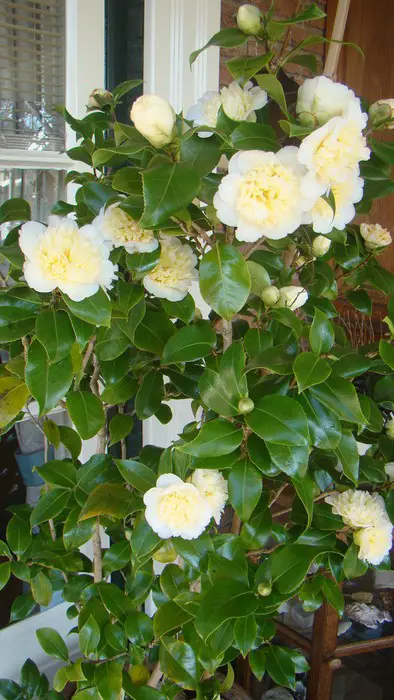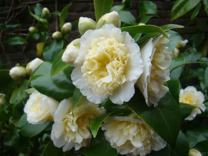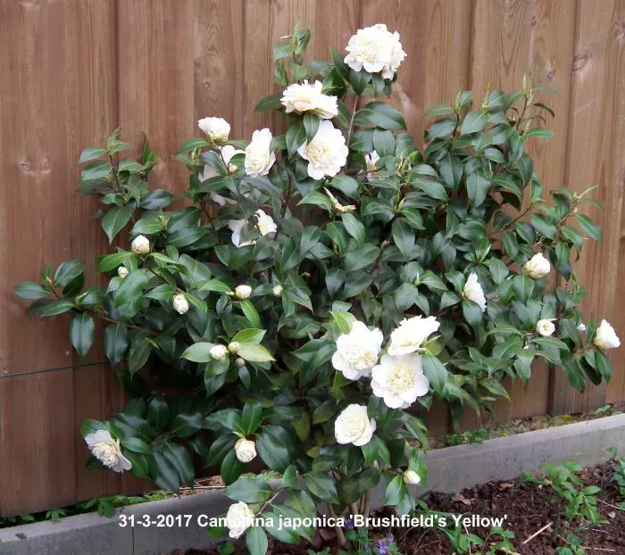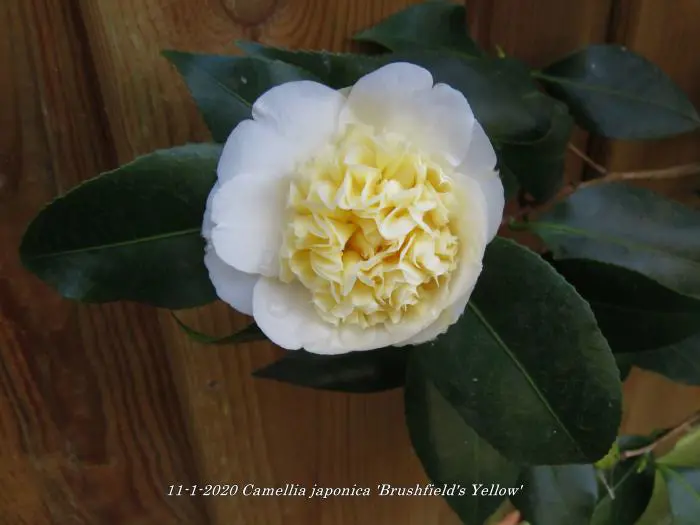 Camellia japonica 'Brushfield's Yellow'