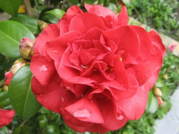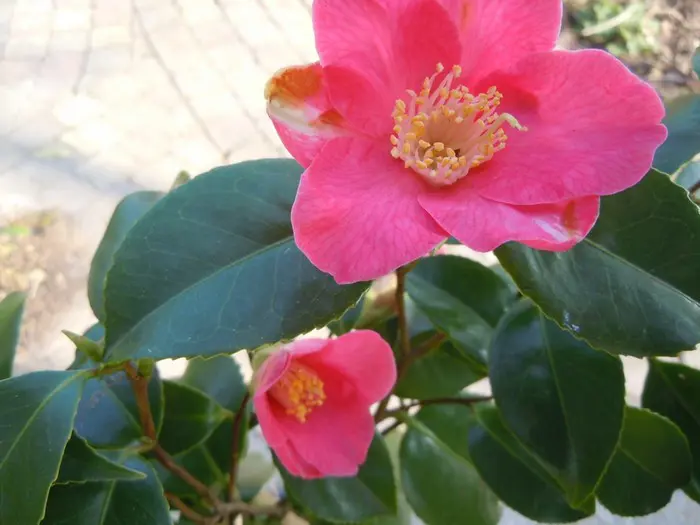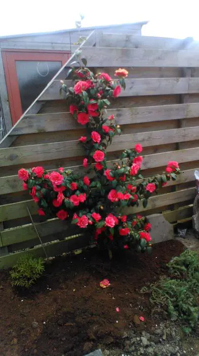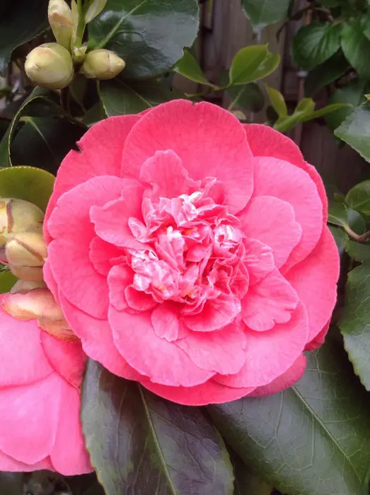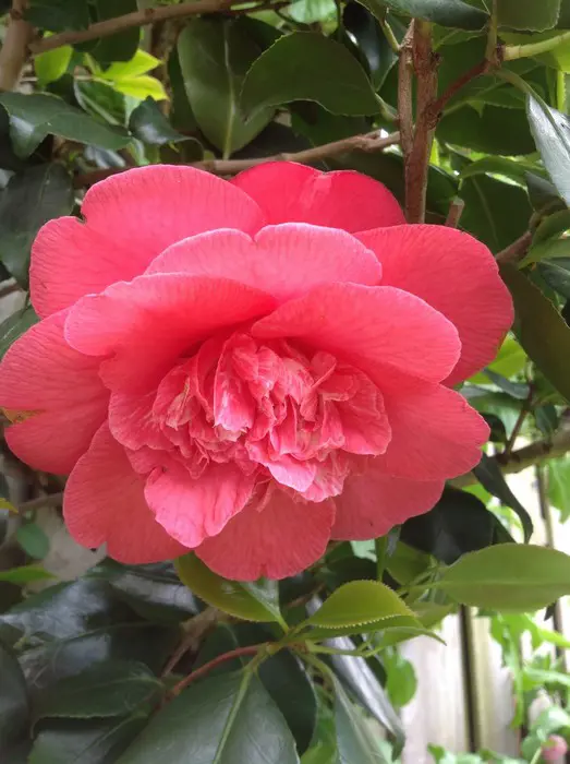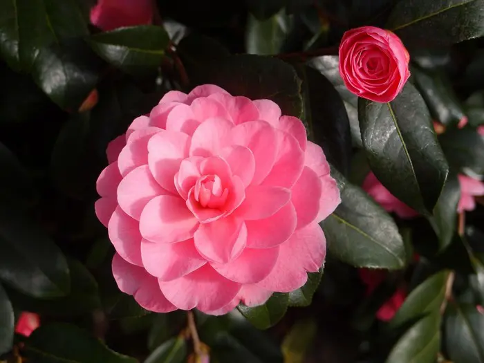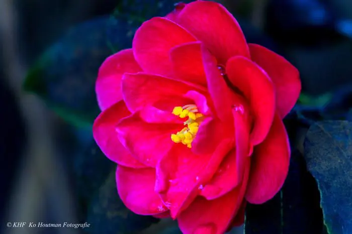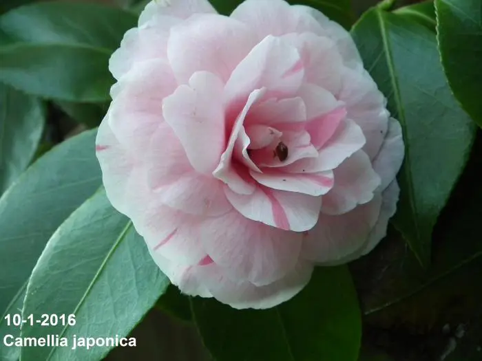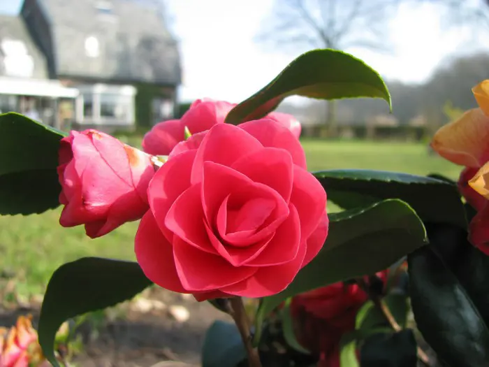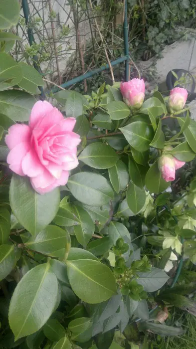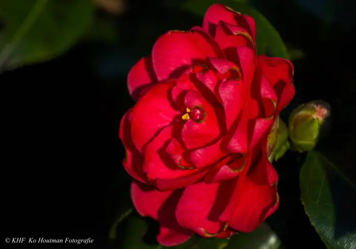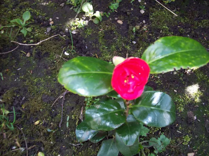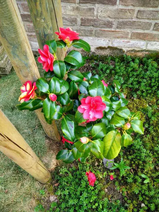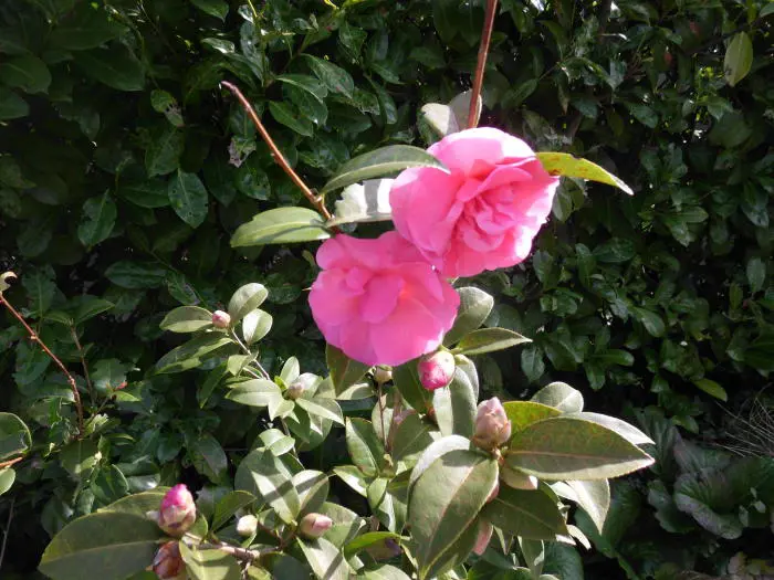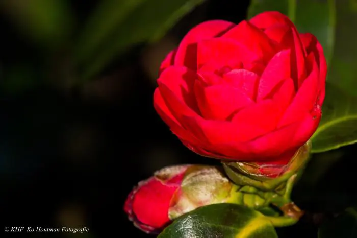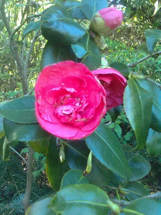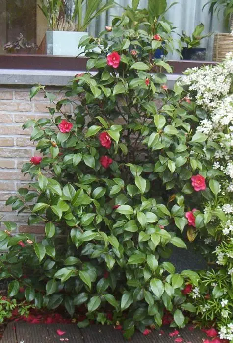 Een groenblijvende struik met glanzend leerachtig blad.