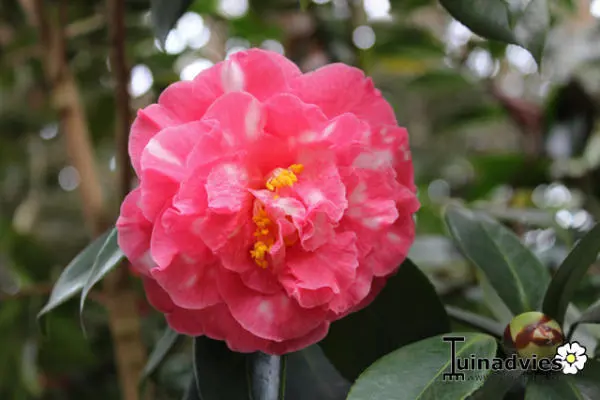 Camellia rusticana is een breedbladige traaggroeiende struik afkomstig uit de besneeuwde berggebieden van Honshu/Japan.
