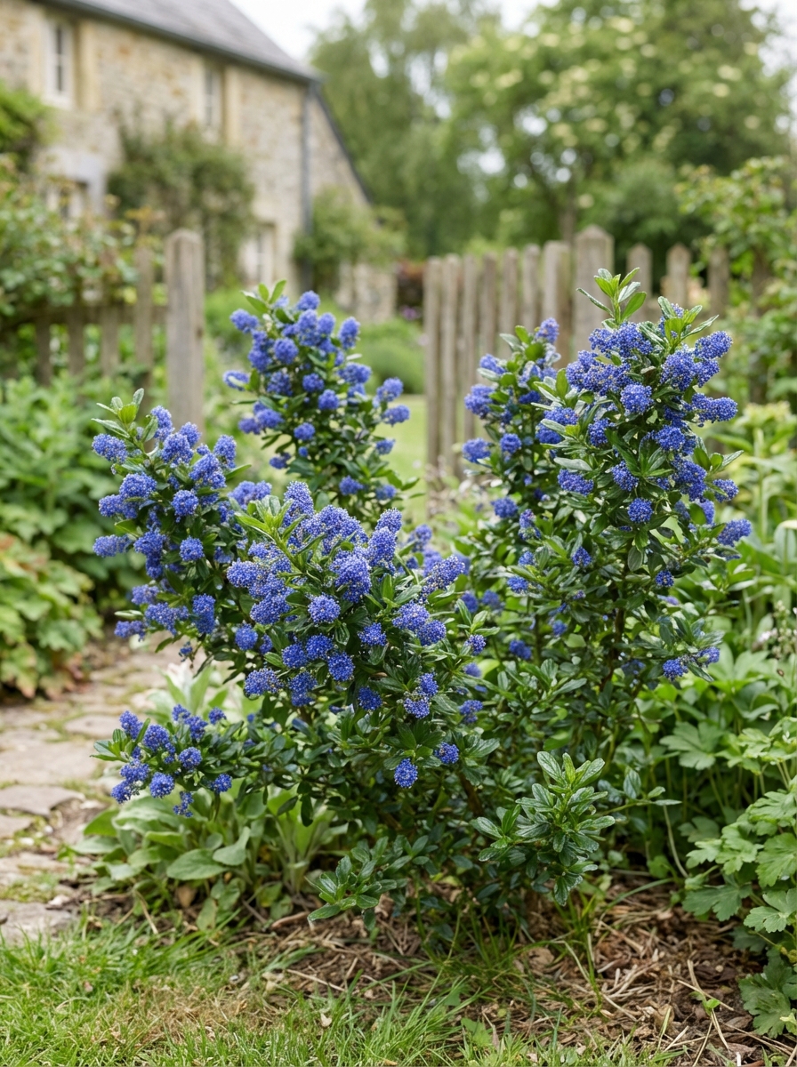 Ceanothus 'Burkwoodii' onderscheidt zich door zijn lange zomerbloei wat eerder zeldzaam is voor een Ceanothus. Bloeit overvloedig met mauve getinte blauwe bloempluimen.