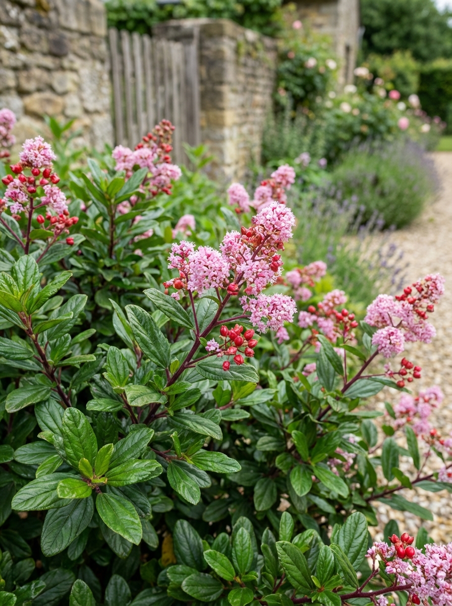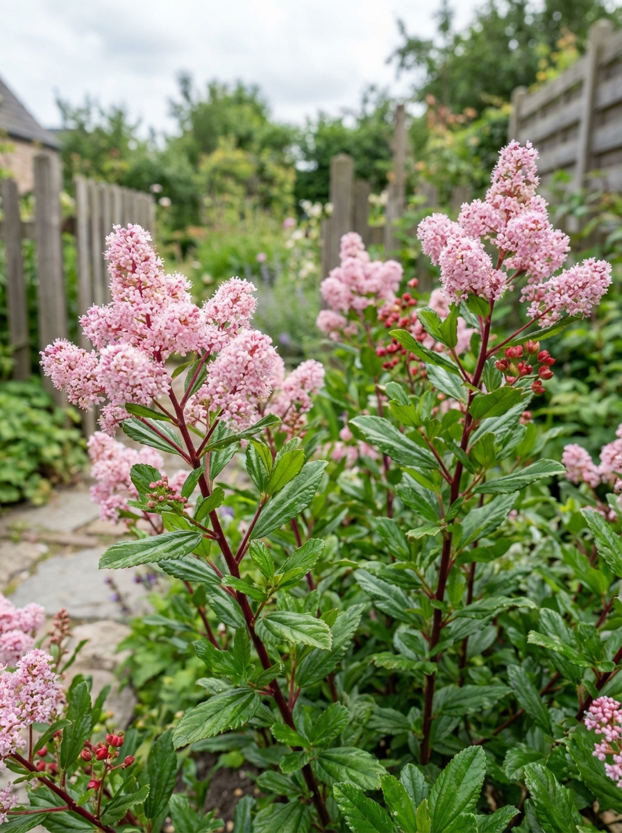 Ceanothus x pallidus 'Marie Rose' is een bladverliezende, bossige en opgaande struik met kleine donkergroene bladeren en bloeit met lange lichtroze bloempluimen.