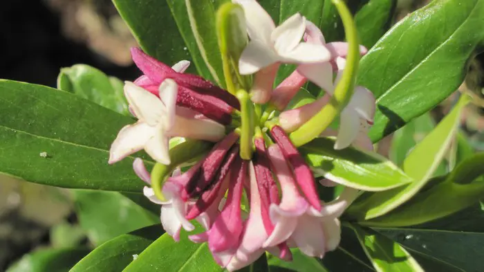 Daphne odora is een prachtige kleine struik met een sterke bloemen- en exotische geur die de tuin op enkele meters afstand kan ruiken.