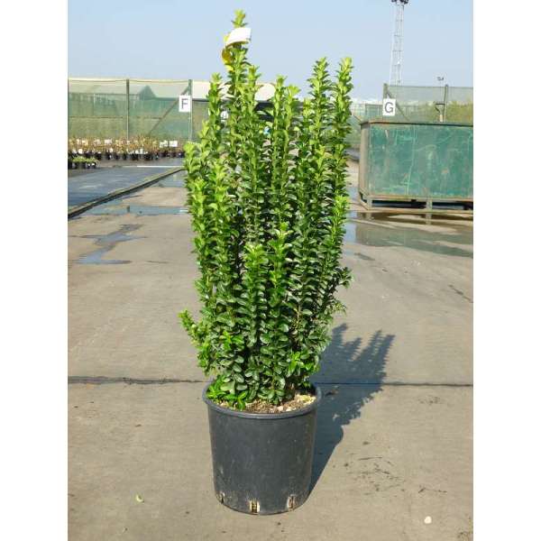 Euonymus japonicus 'Benkomasaki' is een rechtopgaande zuilvormige struik met glanzend grijsgroene bladeren. Wordt 250x70cm.