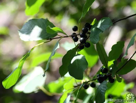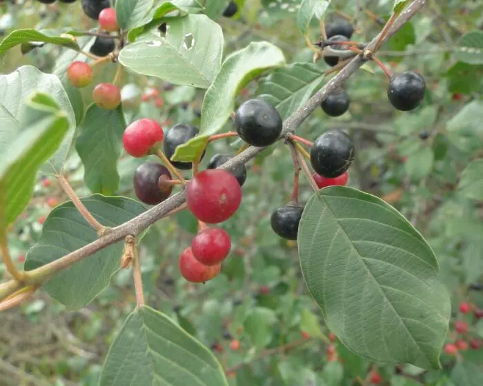Frangula alnus is een bossige, brede, struik met ovale tot ronde, glanzende donkergroene bladeren die in het najaar mooi geel tot rood verkleuren.
