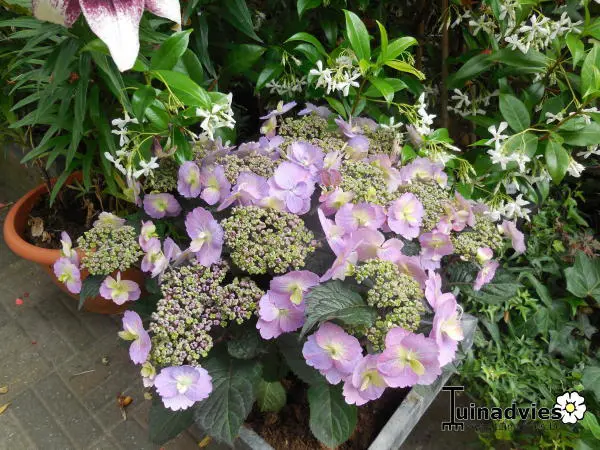 Een compacte schermbloemige hortensia uit de Flair & Flavour-serie dat elk jaar op nieuw hout bloeit en dus ook in het voorjaar kan gesnoeid worden.