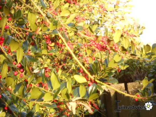 De oranjerode besjes zie je alleen aan de vrouwelijke planten en verschijnen vanaf oktober tot het voorjaar.