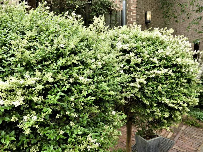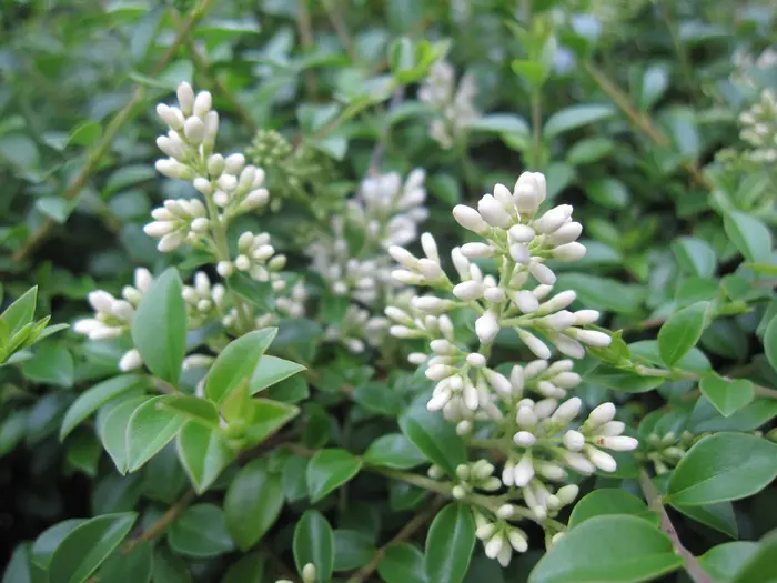 Het klein ovaal blad lijkt erg op buxusblaadjes.