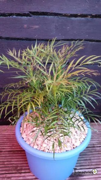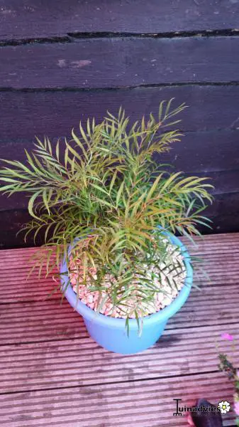 Kan ook in pot staan op een terras maar moet dan zeker binnen overwinteren;