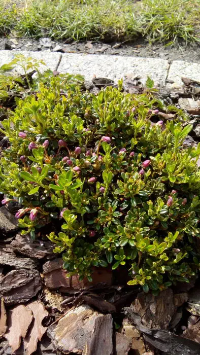 Rhododendron campylogynum subsp. myrtilloides is een dwergvorm met wasachtige pruimroze klokvormige bloemen aan lange stelen.