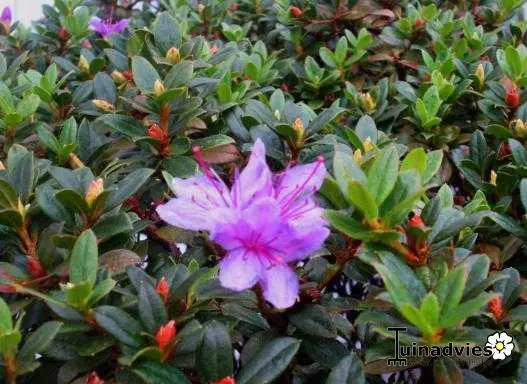 Rhododendron 'Moerheim' is een dwergsoort met lilapaarse bloemen.