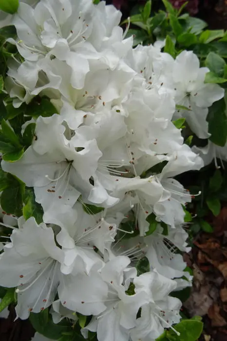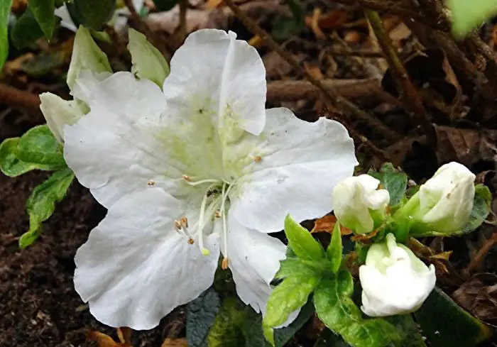 Rhododendron 'Mary Helen' is een compact blijvende struik met donkergroene glanzende bladeren.