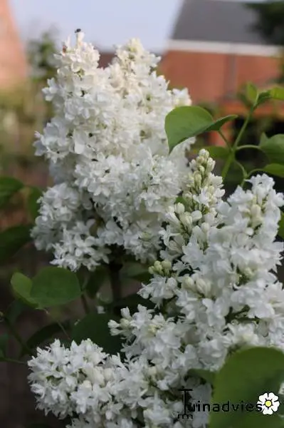 Syringa vulgaris 'Mme Lemoine' is een oud ras, dat nog steeds wordt gewaardeerd om zijn groeikracht en overvloedige witte bloei in het voorjaar. De geurende trossen van kleine dubbele bloemen, bloeien in mei op een plant die na verloop van tijd een echte kleine boom zal vormen.