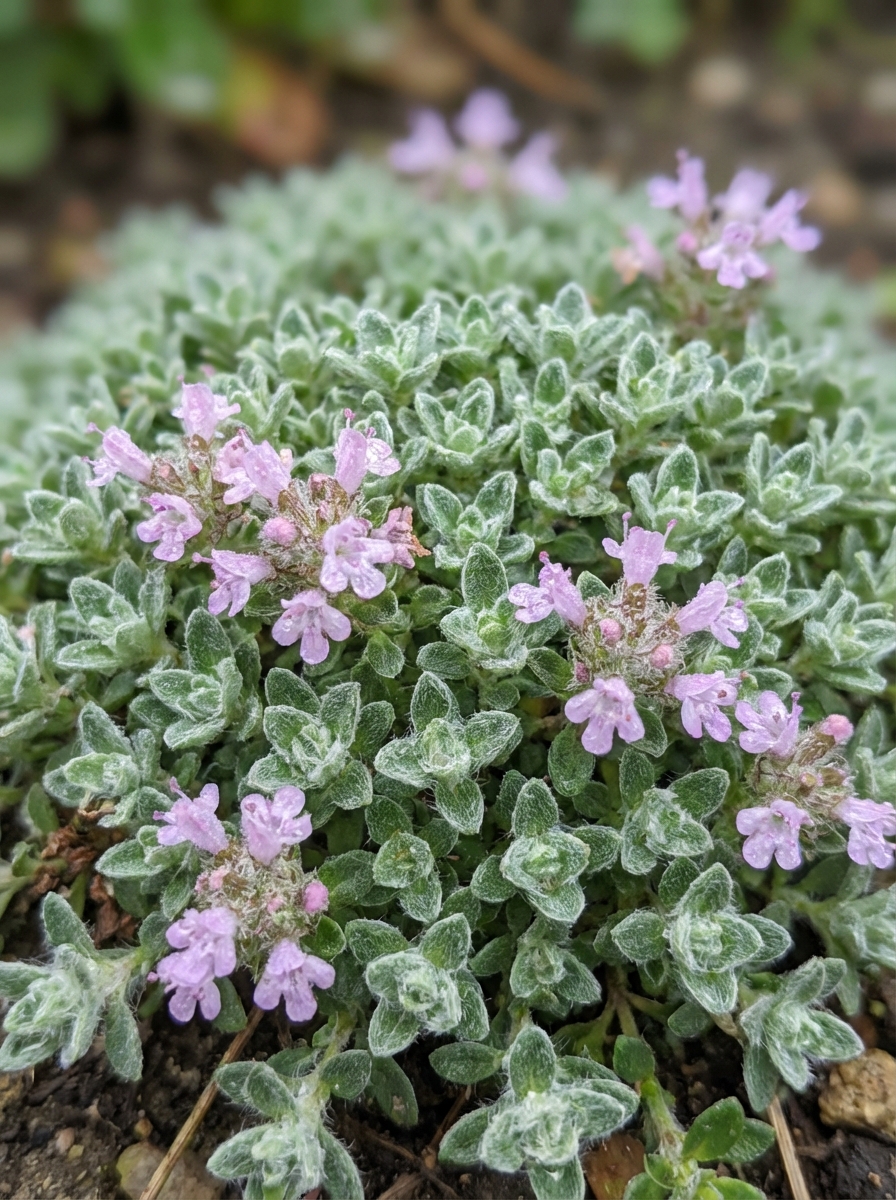 Thymus praecox 'Pseudolanuginosus' is erg geschikt om tussen de voegen van stapelmuurtjes te groeien.