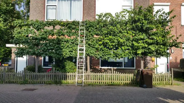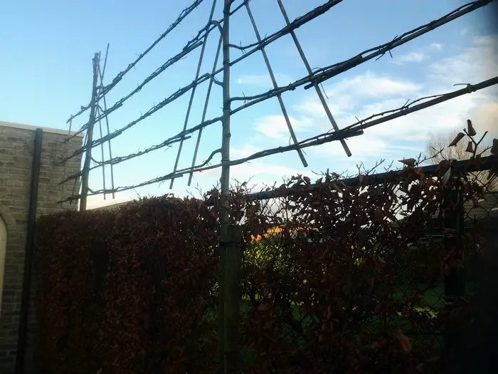 Al de zijtakken die op de leitakken staan worden in de wintermaanden tot februari gesnoeid.