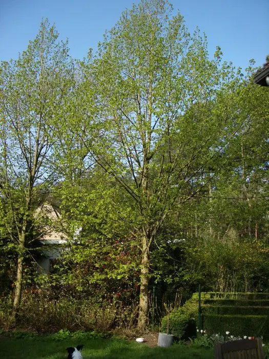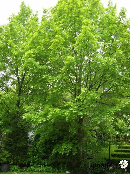 Het blad is hartvormig, scherp gezaagd en verkleurt naar een gele herfstkleur.