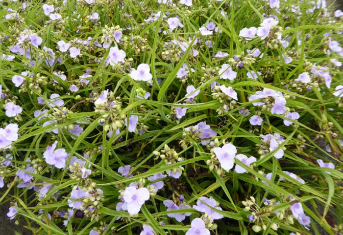 Het is een langbloeiende plant waarvan elke bloem maar 1 dag bloeit met telkens gele afstekende stamper. De lilablauwe bloemen staan in bundels van 3 aan een stengel.