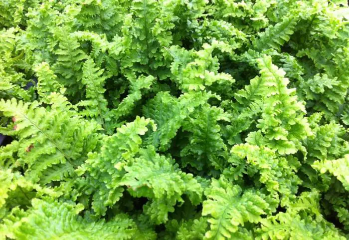 Het gevederd blad is licht gekroesd en glanzend groen.