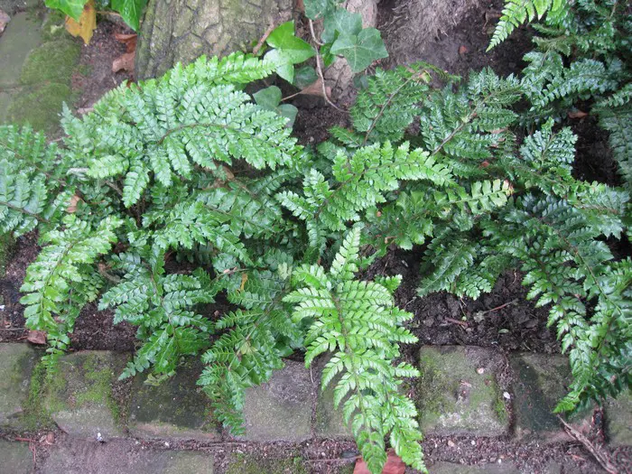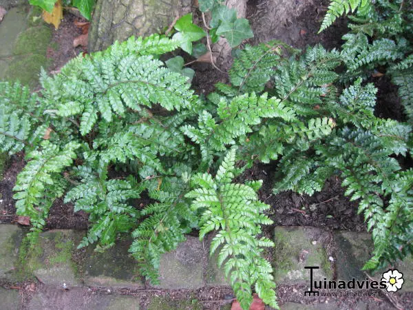 Polystichum polyblepharum 'Jade' heeft glanzende wintergroene bladeren