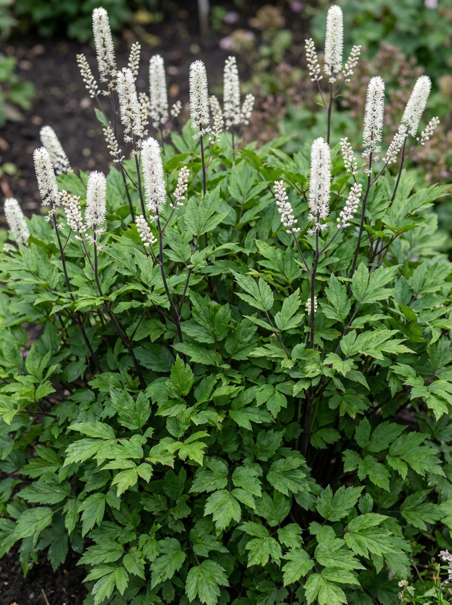Actaea japonica 'Silver Dance' is een compacte variëteit met een heerlijk gelobd zilverglanzend blad in het voorjaar en een schitterende bloei in september. De bloei is zeer rijkelijk en luchtig met slanke aren bezet met een overvloed aan roomwitte geurige bloempjes uit roze knoppen.