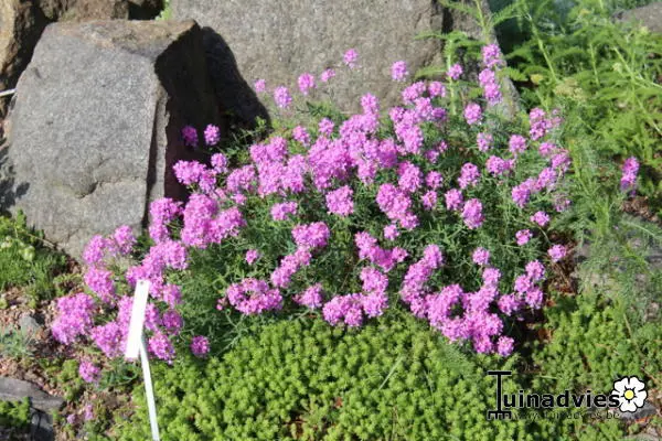 Aethionema grandiflorum groeit breed uit en is daarom ook een goede bodembedekker.