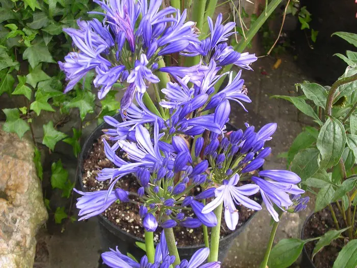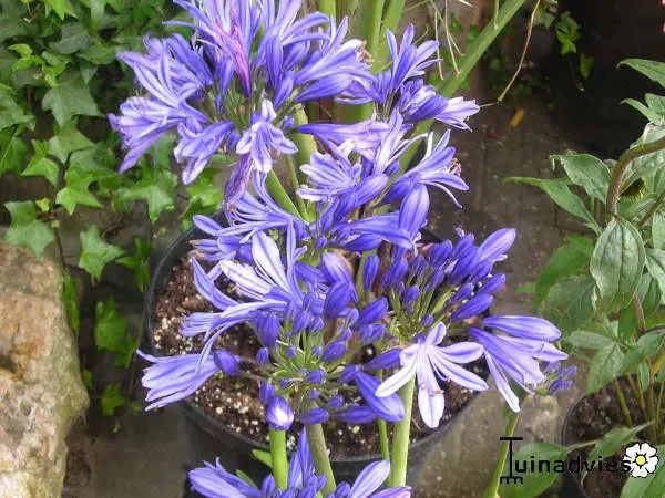 Bladhoudende agapanthussen gedijen het best in pot als kuipplant en moeten in de winter tegen strenge vorst (-5/-3°C) beschermd worden. Laat ze op een vorstvrije koele plaats overwinteren (2/8°C), doch op een lichte plaats. Bij te weinig licht zullen de bladeren geel worden.