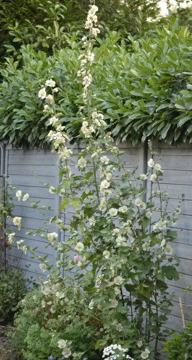 Het is een langlevende, struikachtige plant met halfgevulde bloemen, ivoorwit tot bleekgeel met een beetje oranje in het hart.