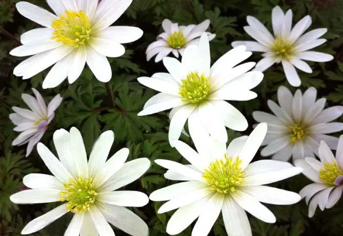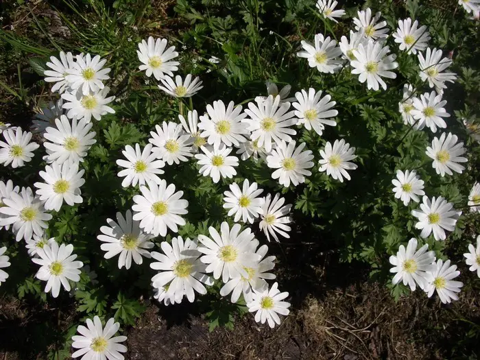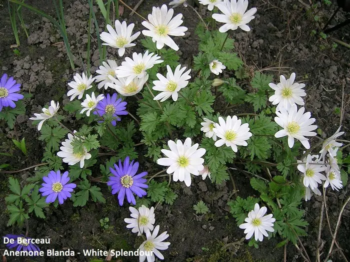 Anemone blanda 'White Splendour' bloeit met zuiver witte stervormige bloemen met een geel hartje die in de vroege lente bloeien en gemakkelijk verwilderen.