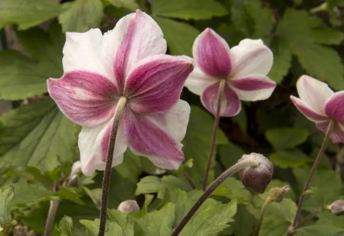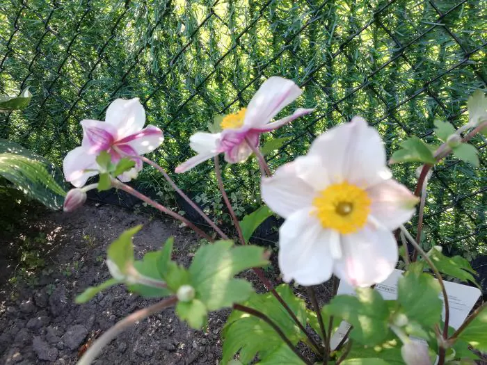 Anemone 'Dainty Swan' is een kleinbloemige cultivar met witte bloemen waarvan de achterkant meer dieproze is.