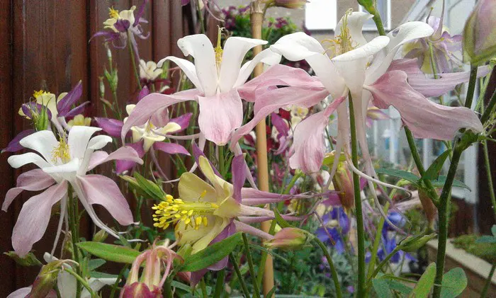 Aquilegia 'Mrs. Scott Elliott' is een zeer sierlijke vaste plant met enkelvoudige, één- tot tweekleurige bloemen in een verscheidenheid van kleurencombinaties.