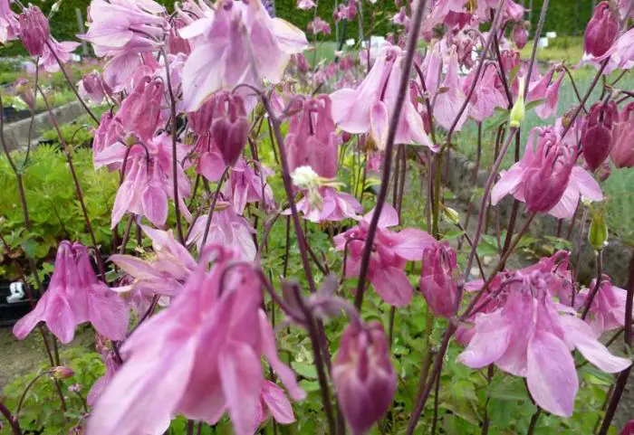 Aquilegia vulgaris 'Heidi' zijn zeer sierlijke vaste plant met enkelvoudige roze/zachtwitte bloemen met gespoorde kroonbladen.