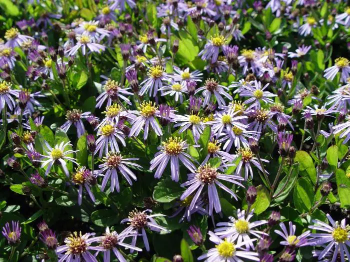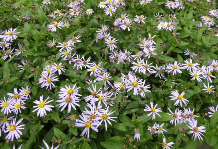 Aster ageratoides 'Adustus Nanus' is een vaste plant oorspronkelijk afkomstig uit Korea met sterk vertakte rechtopstaande bloemstengels.