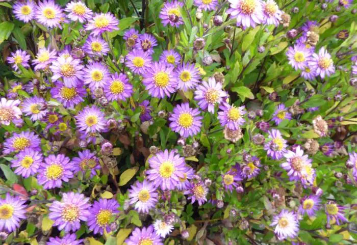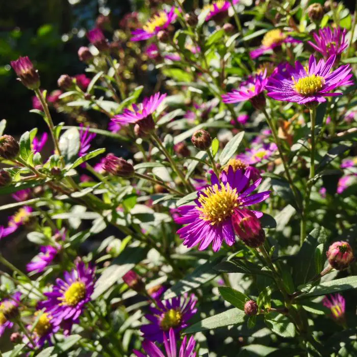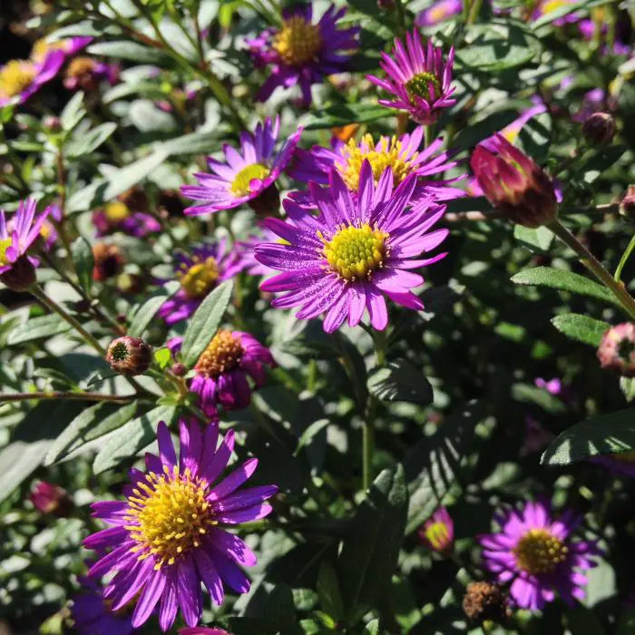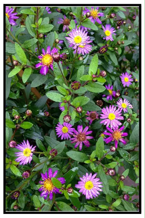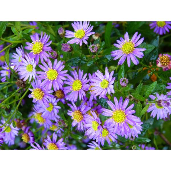 Aster ageratoides 'Ezo Murasaki' is een vaste plant oorspronkelijk afkomstig uit Korea met sterk vertakte rechtopstaande donkere bloemstengels.