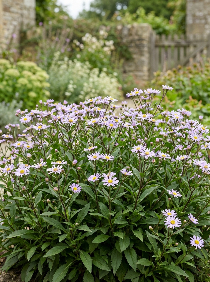 Aster ageratoides 'Harry Schmidt' is een vaste plant oorspronkelijk afkomstig uit Korea met sterk vertakte rechtopstaande bloemstengels.