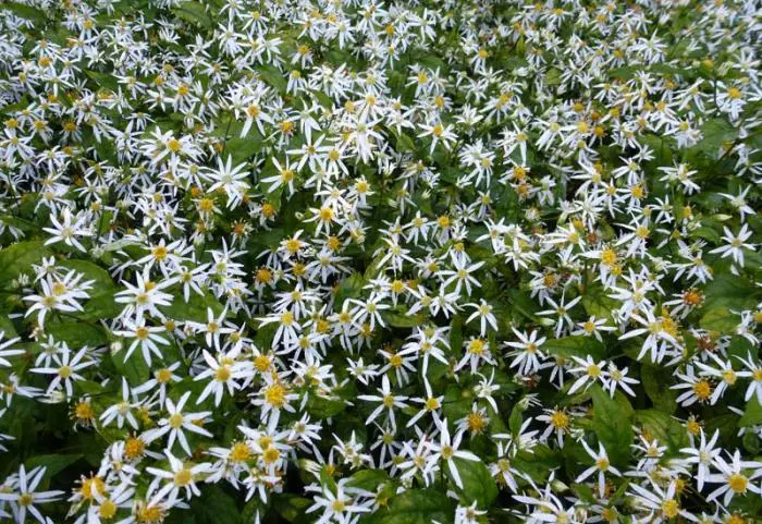 Deze aster is de enige soort die gedijt in de buurt van de niet al te krachtige wortels van bomen en struiken.