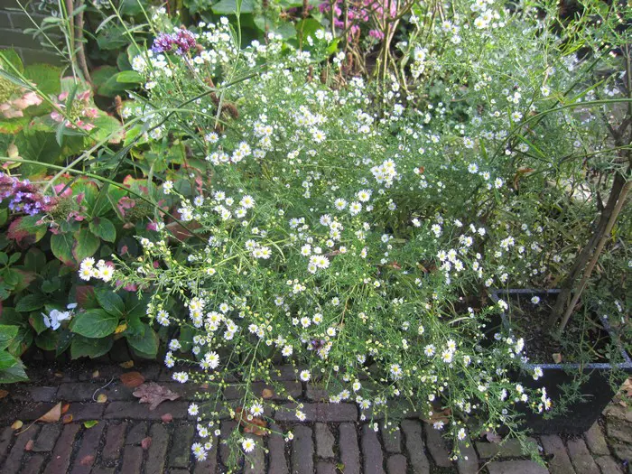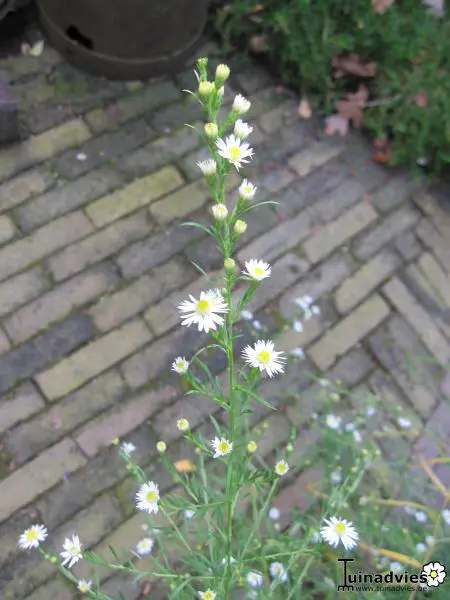 Aster ericoides is een soort afkomstig uit N-Amerika met een dicht vertakte en bossige groei van fijne kleine blaadjes.