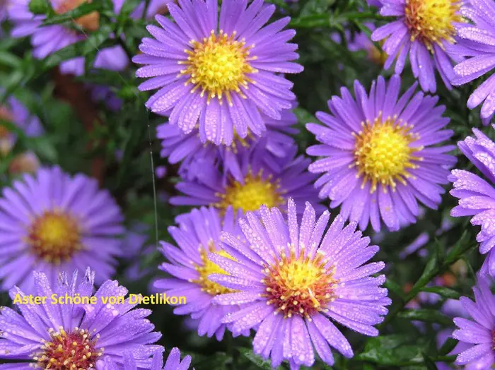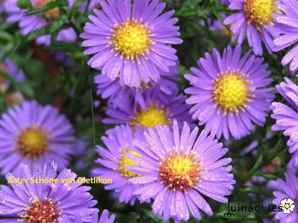Asters zijn meerjarige bloemen met een groot aantal variëteiten in alle kleuren, allemaal zeer rijkbloeiend.