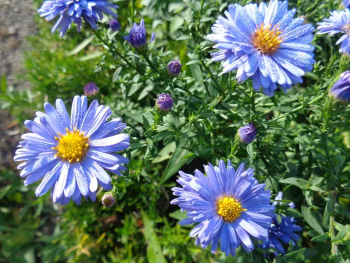Ze bloeien rijkelijk van de zomer tot de herfst in verschillende tinten van wit, roze, rood, paars en blauw.