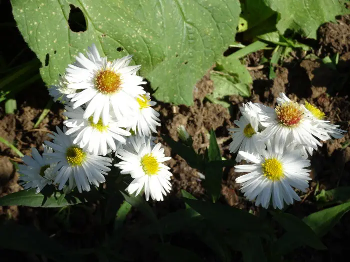 Bloeit rijkelijk in het najaar met halfdubbele witte bloemhoofdjes met een goudgeel hart.