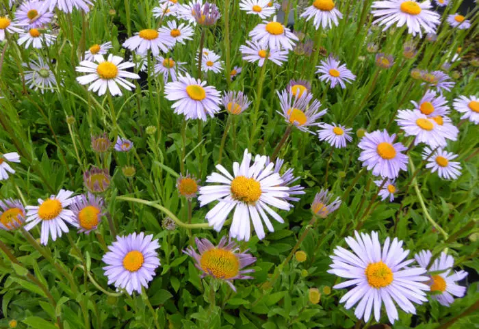 Aster tongolensis 'Wartburgstern' is een matvormende aster met zacht behaarde, elliptische, donkergroene bladeren.