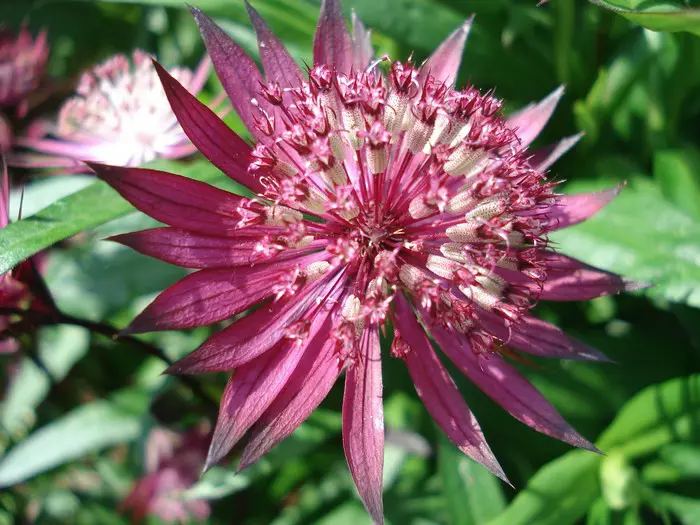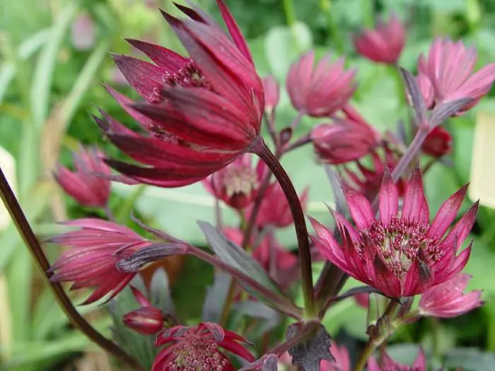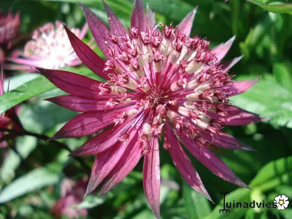 Astrantia major 'Ruby Star' is een nakomeling van 'Ruby Wedding' maar wordt veel hoger tot 70/80cm.