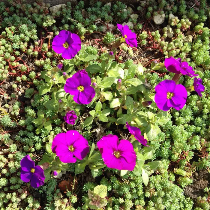 Passen in rotstuintjes, bloembakken en tussen stenen.