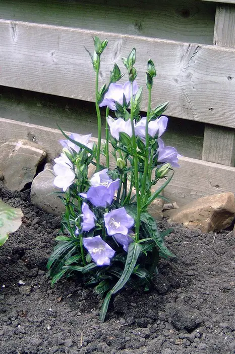 Campanula persicifolia ‘Takion Blue’ is een compacte plant uit de Takion-serie met violetblauwe komvormige bloemen maar met een naar boven en buiten gerichte bloem.